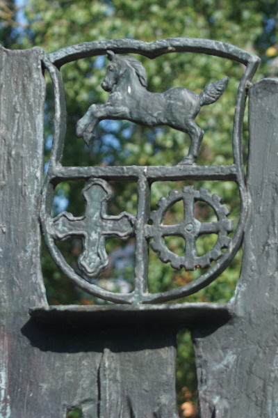 an einen stilisierten Baum. Das Haunstetter Stadtwappen sowie die Figurengruppen
