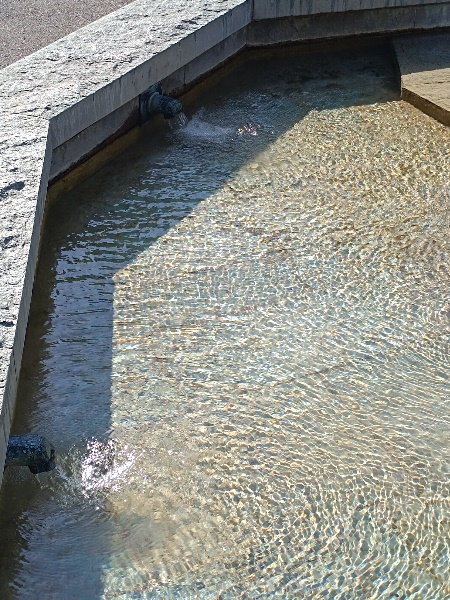 zieren den Brunnen. Das Becken, in das das Brunnenwasser fließt,