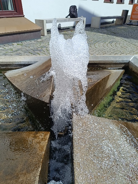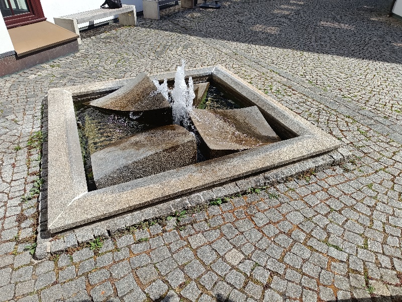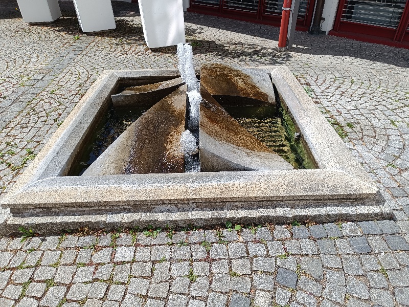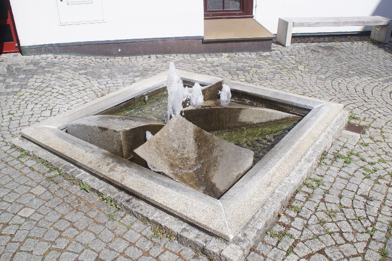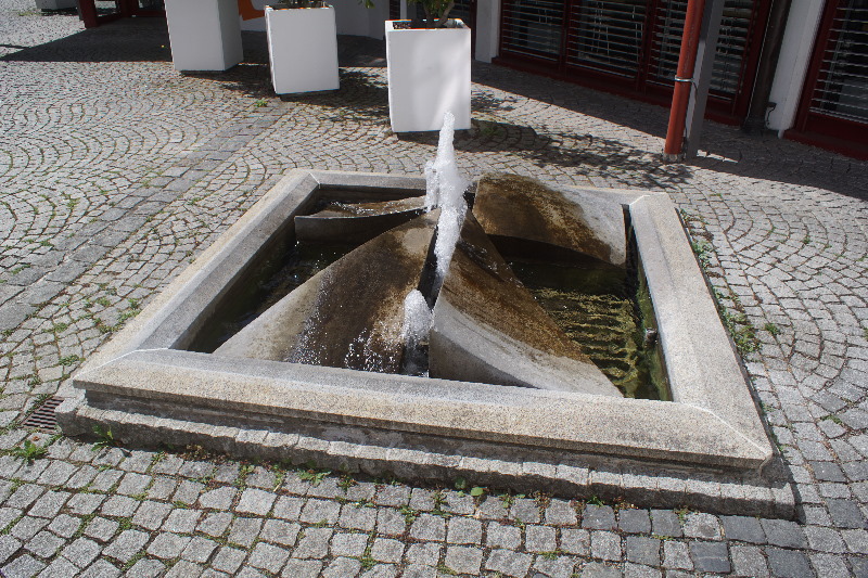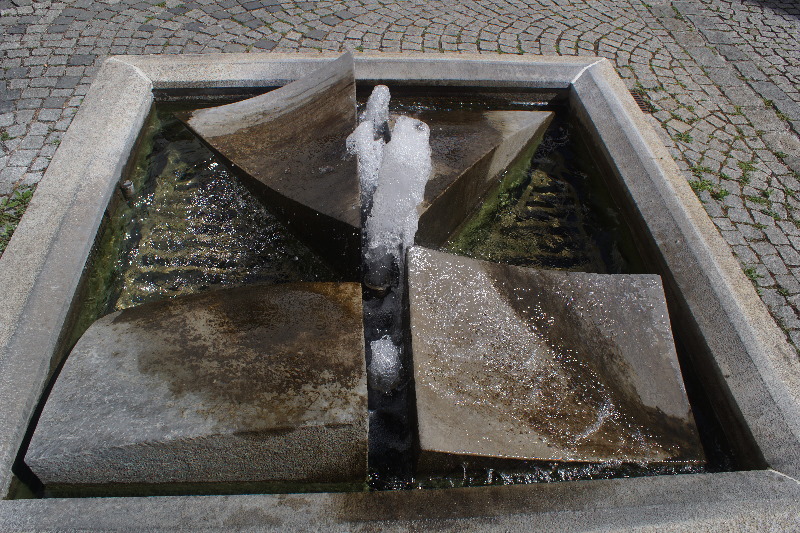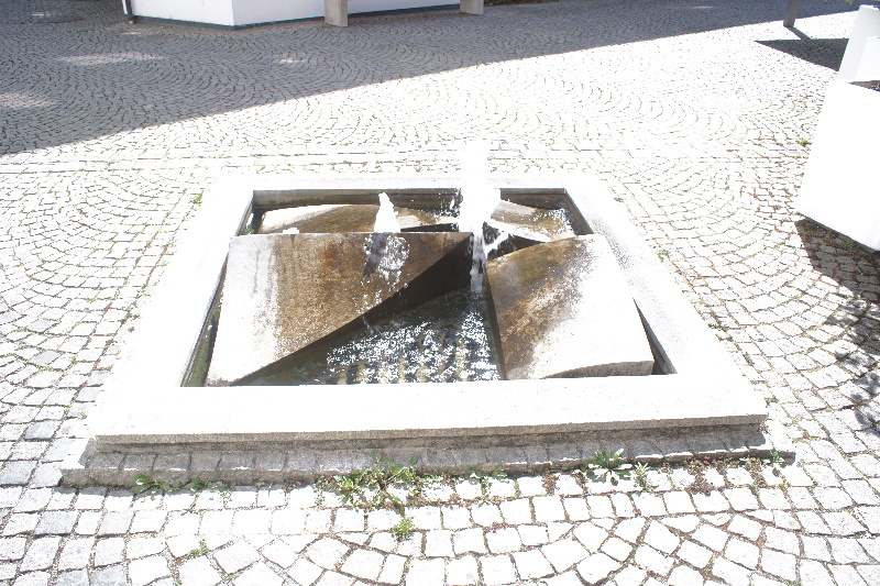 eine Fontäne, die dann wieder ein Dreieck bilden. Dieser Brunnen
