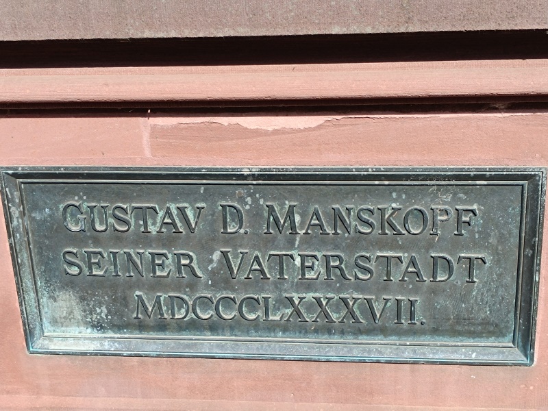 eine Plakette mit der Inschrift Gustav D. Manskopf seiner Vaterstadt MDCCCLXXXVII.