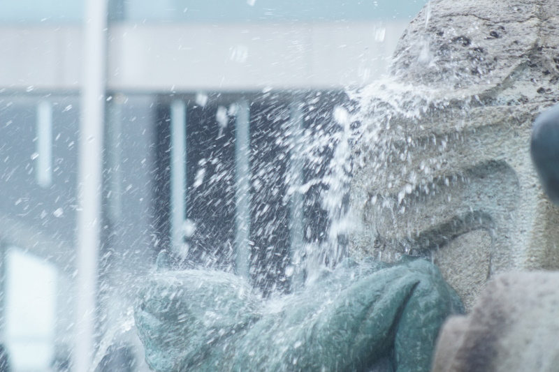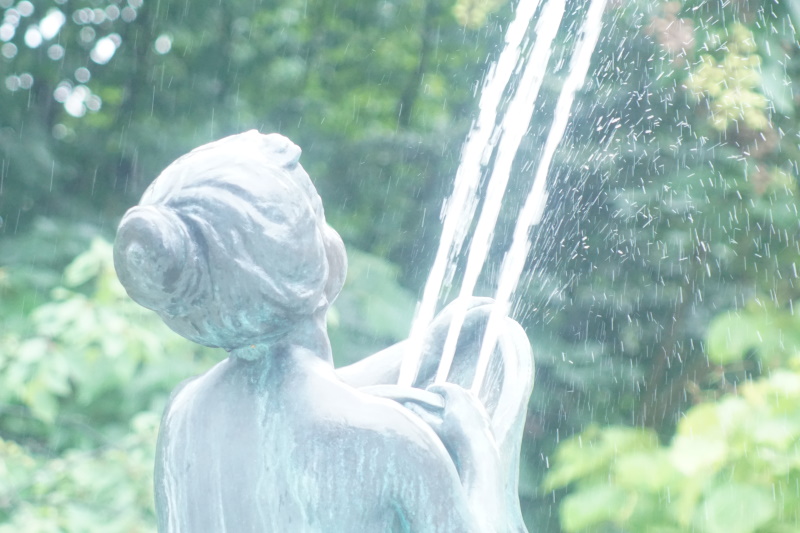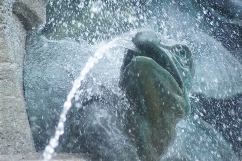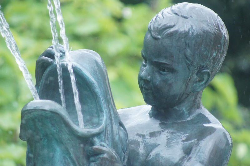 wurden. Am Sockel des acht Meter hohen Brunnens spielen kleine wasserspeiende