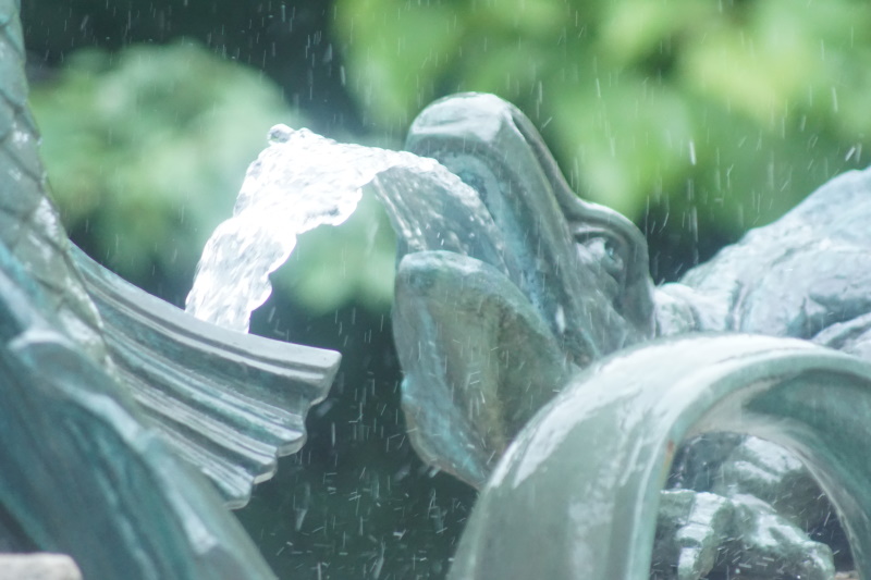 Fabelwesen, Fische und Echsen aus Bronze der Nymphe zu Füßen.