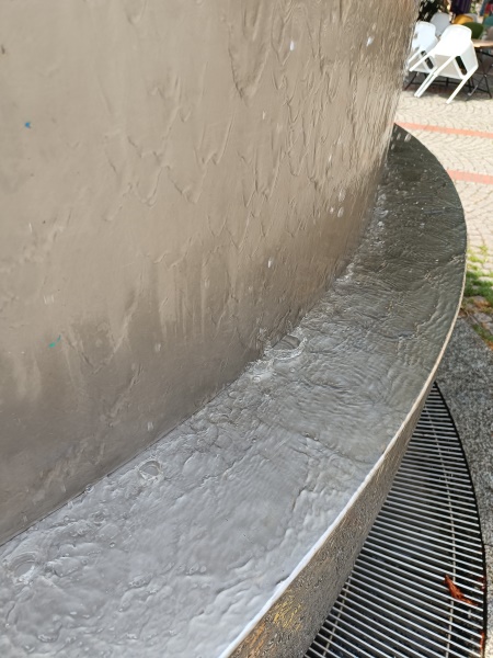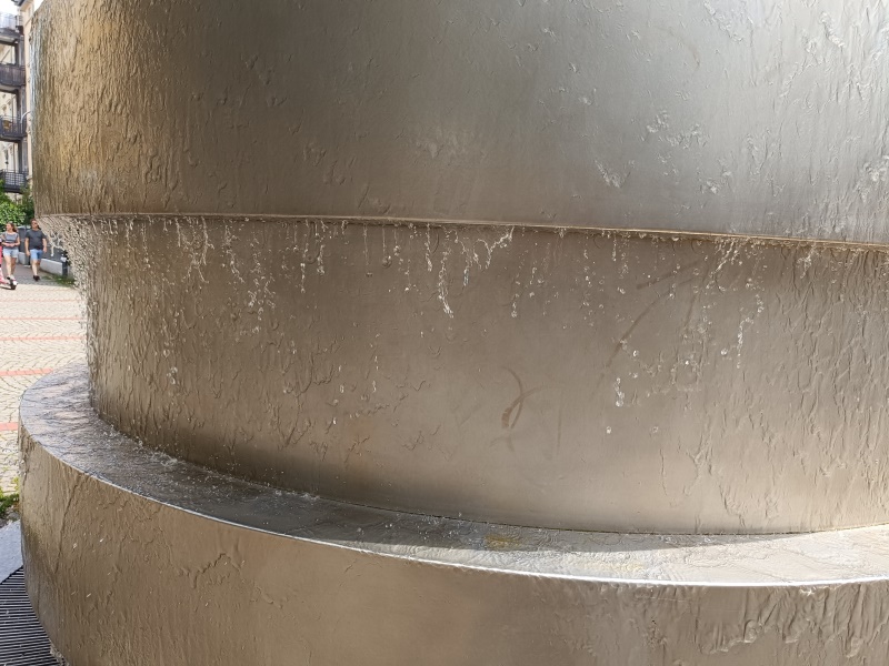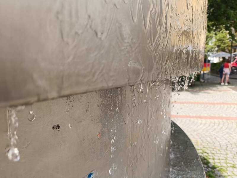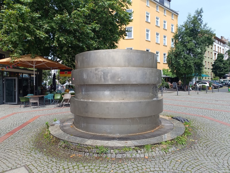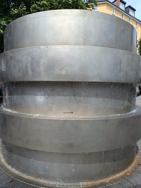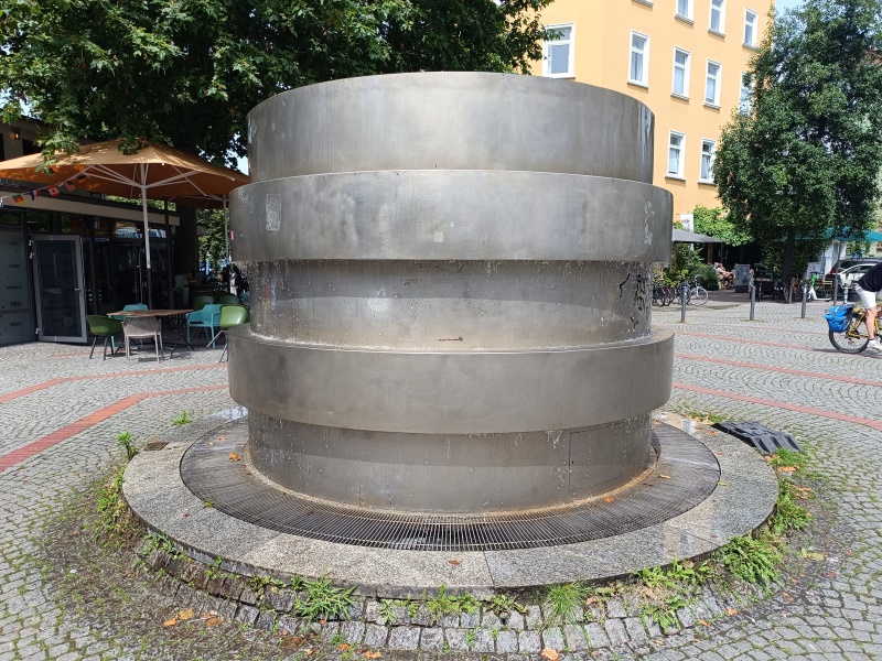 wurde der Brunnen eingeweiht. Die zylindrische Brunnenplastik tarnt den