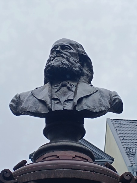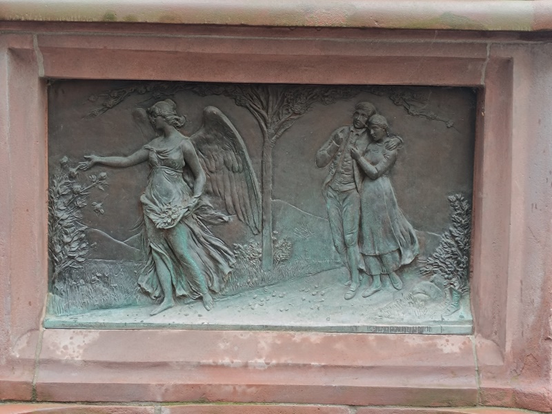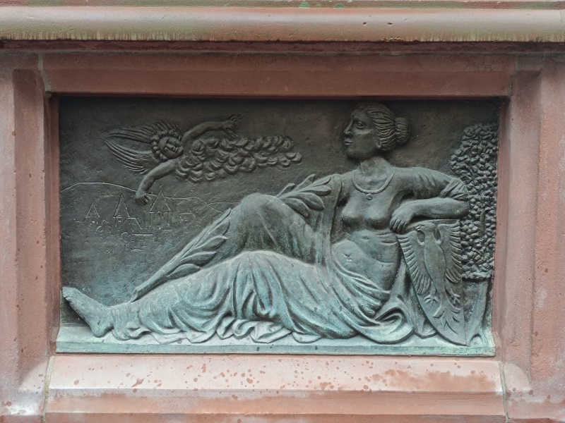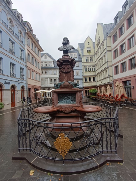 Francofurtia (Kopie), darüber eine Bronzebüste des Dichters.