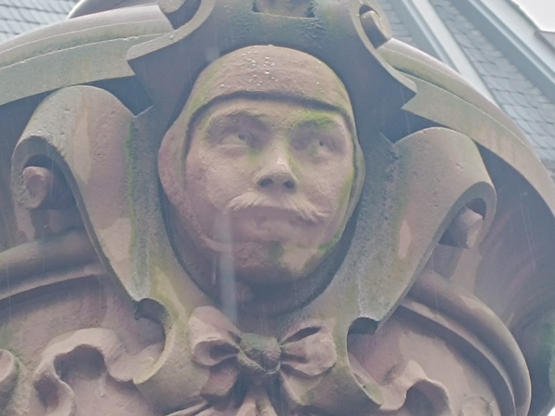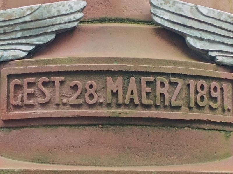 aus Rotem Mainsandstein. Diese Säule trägt ein Relief der