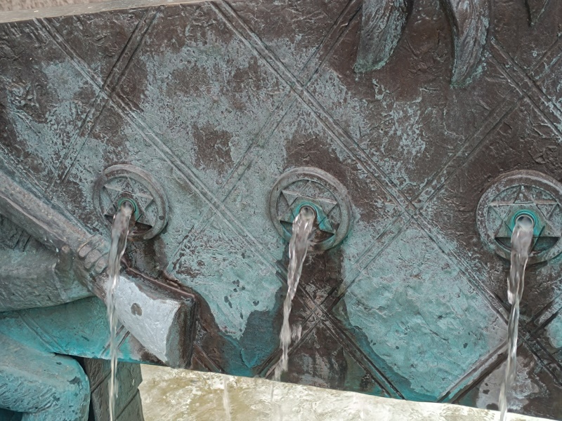 Aus vierzehn Düsen spritzt Wasser in das Brunnenbecken. "An