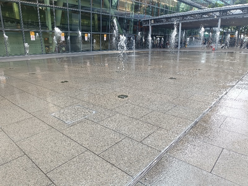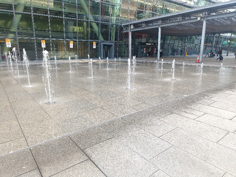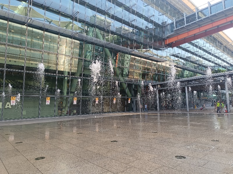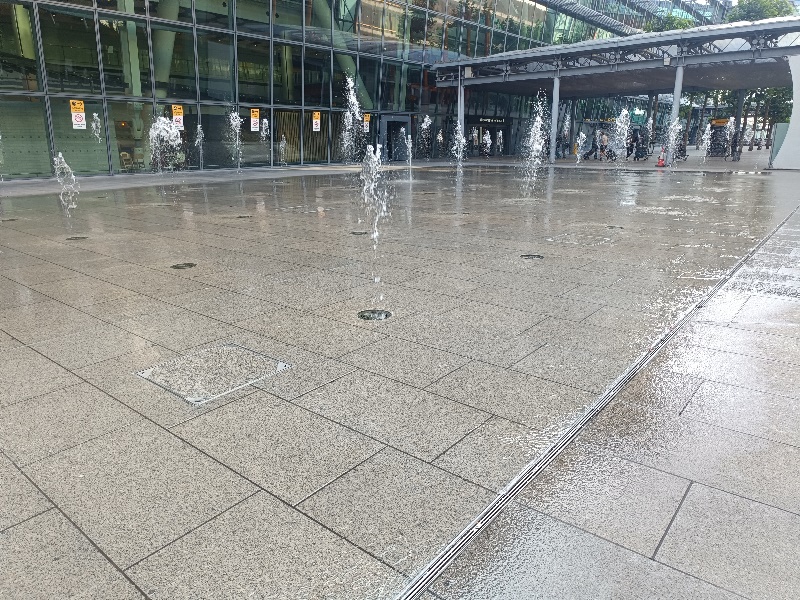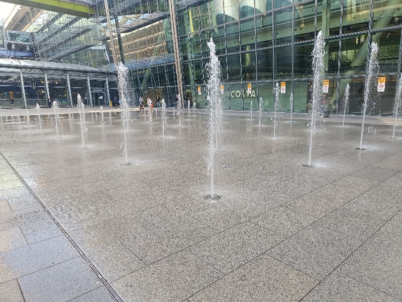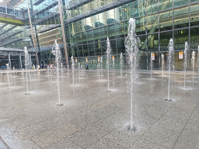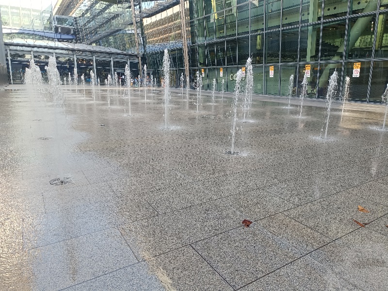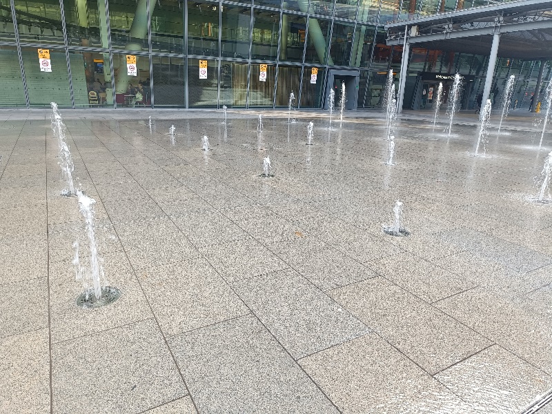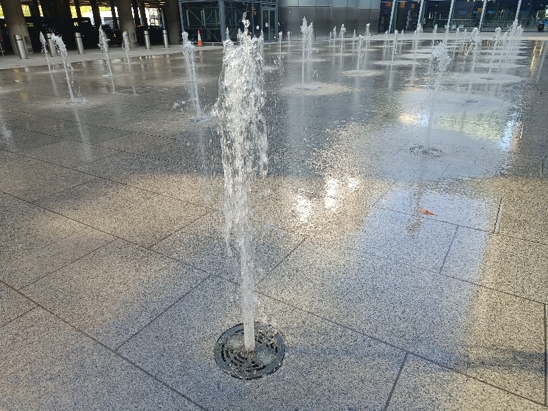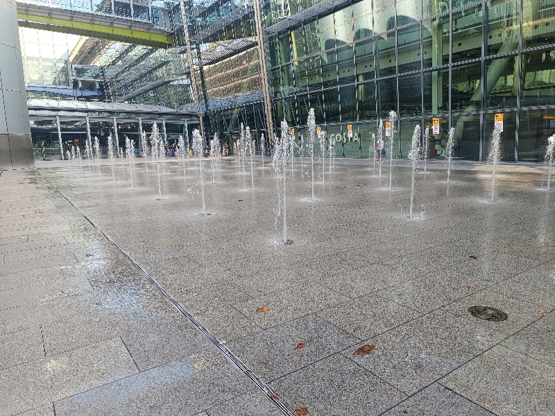 Fontänenfeld mit 50 Bodenfontänen befindet sich am Flughafen