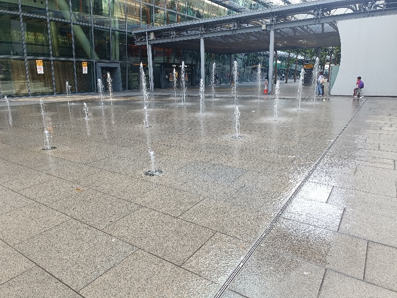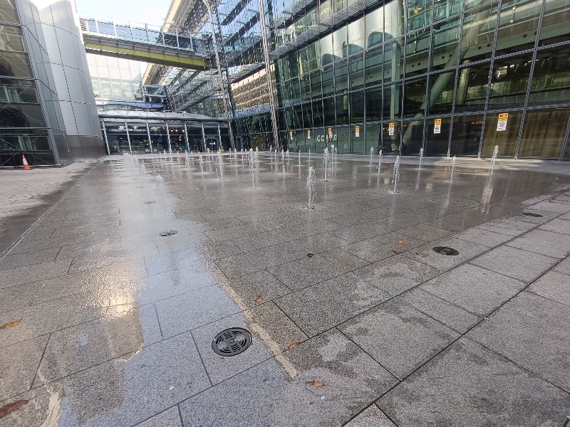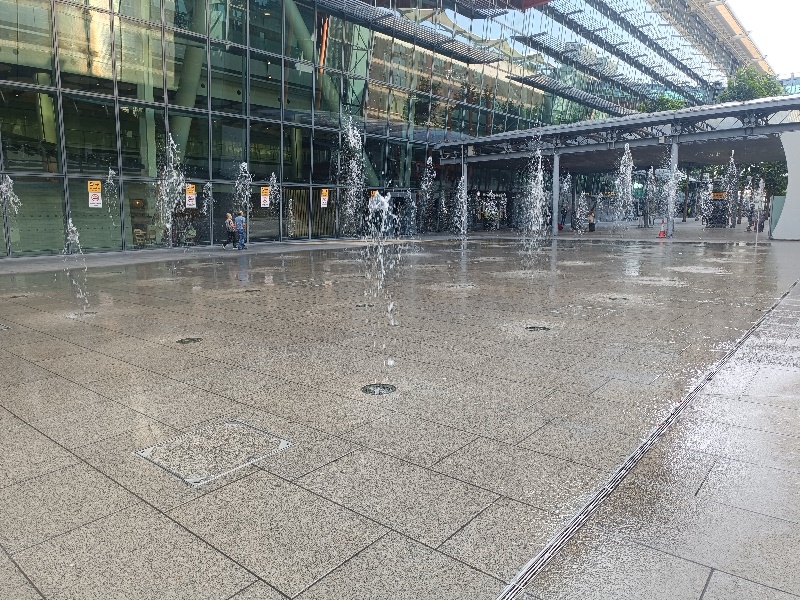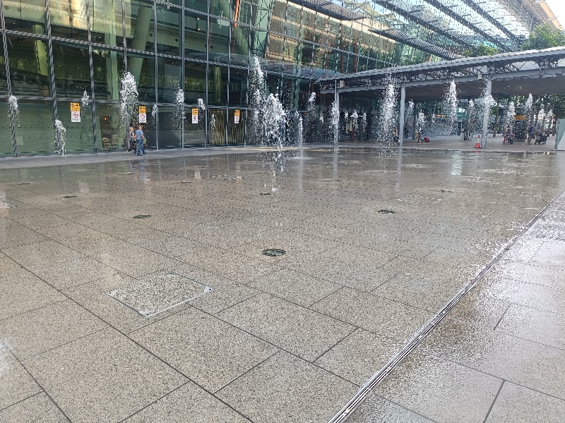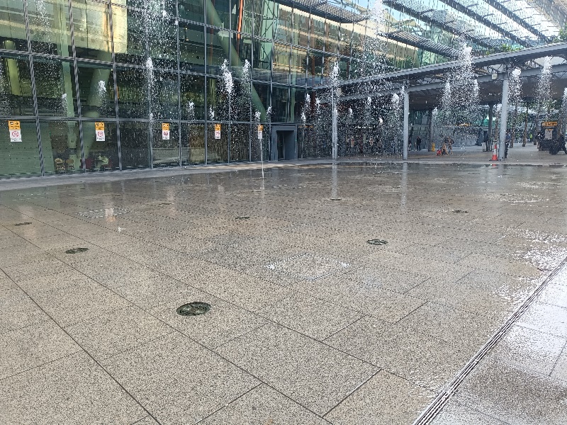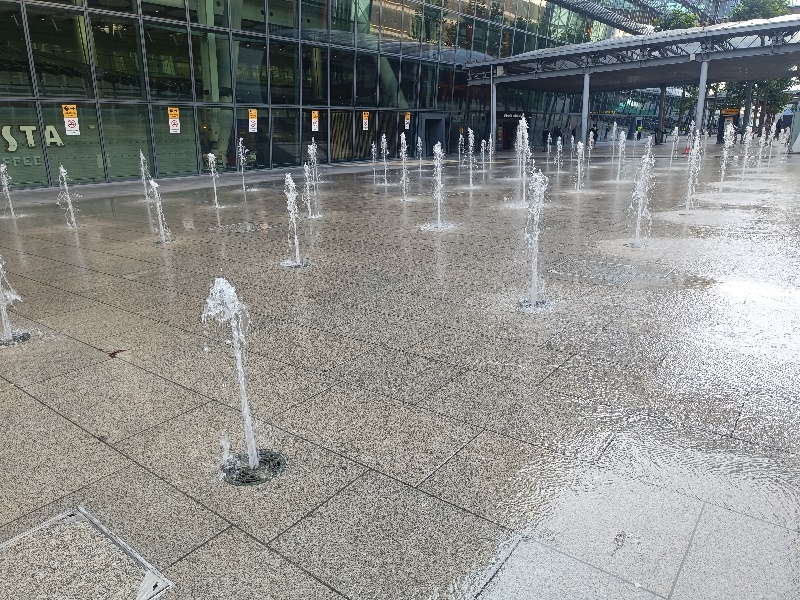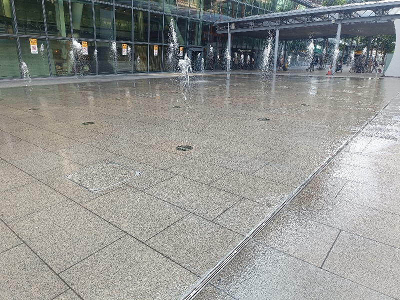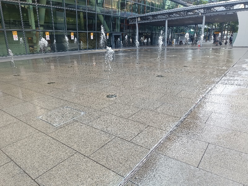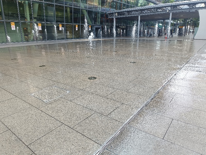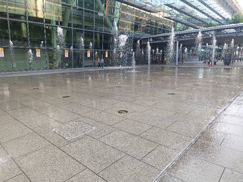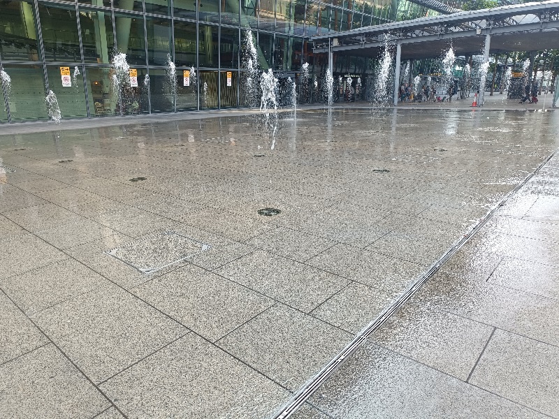 Fontänenfeld mit 50 Bodenfontänen befindet sich am Flughafen