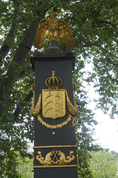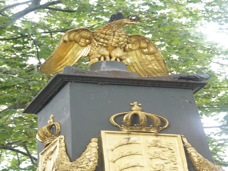 Der Säulenschaft des Akademiebrunnens wird von einem Adler bekrönt.