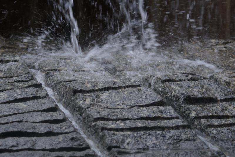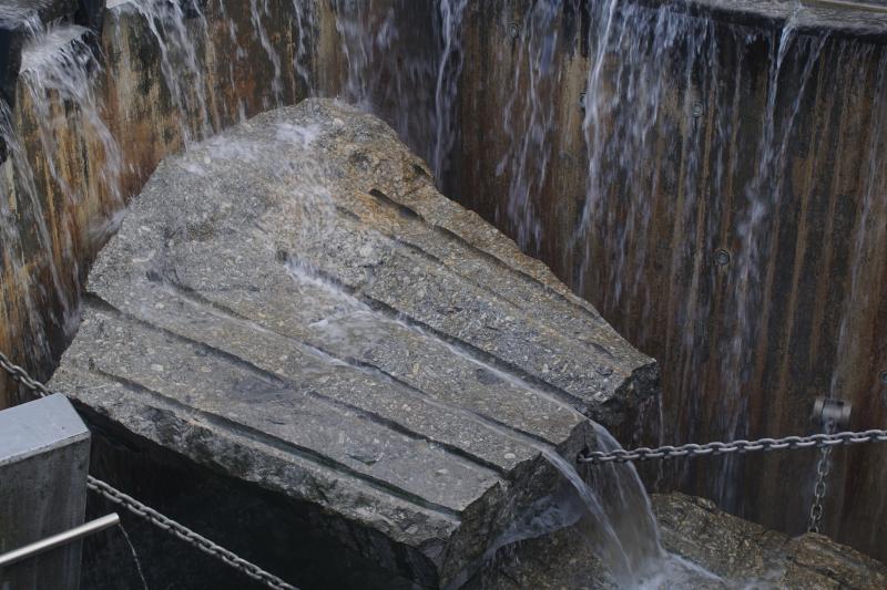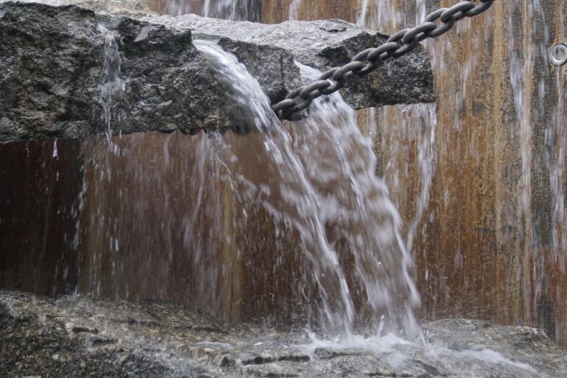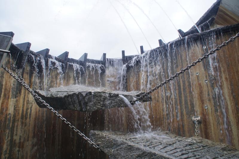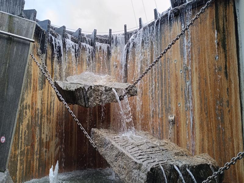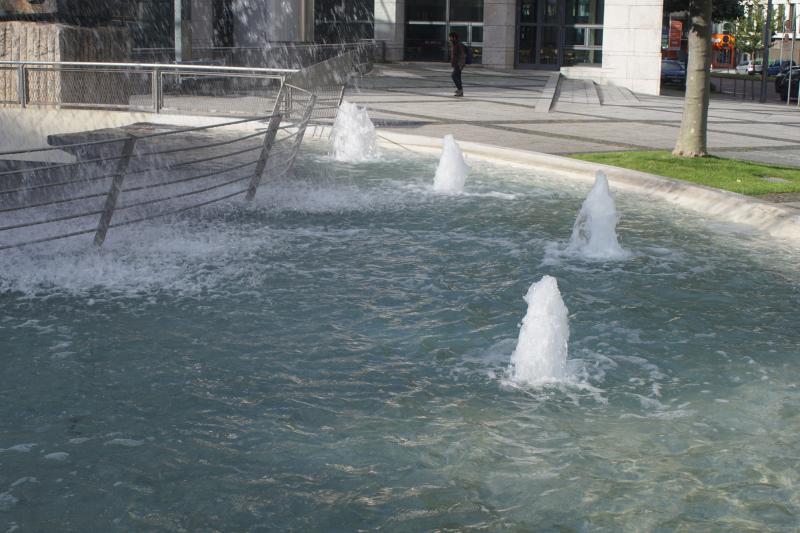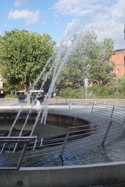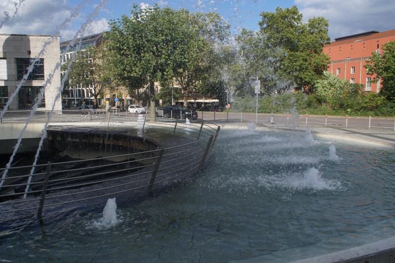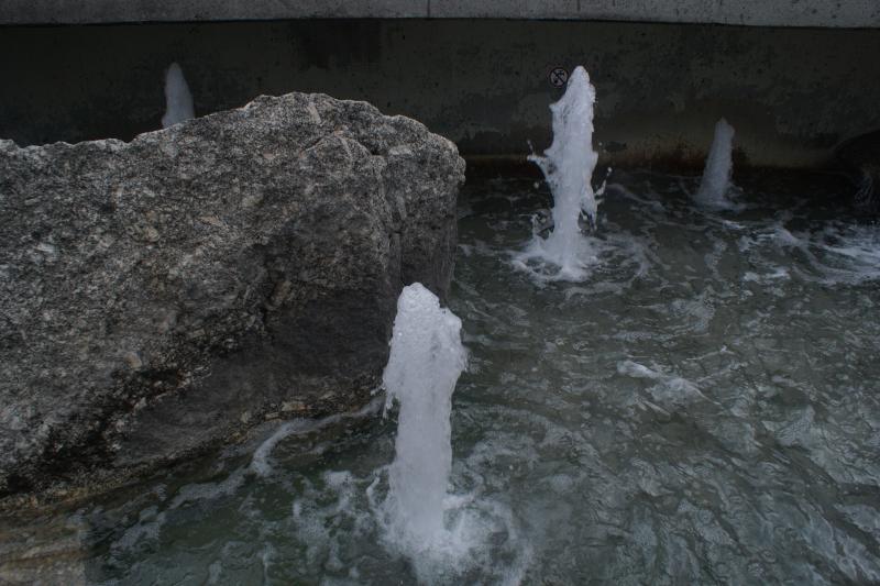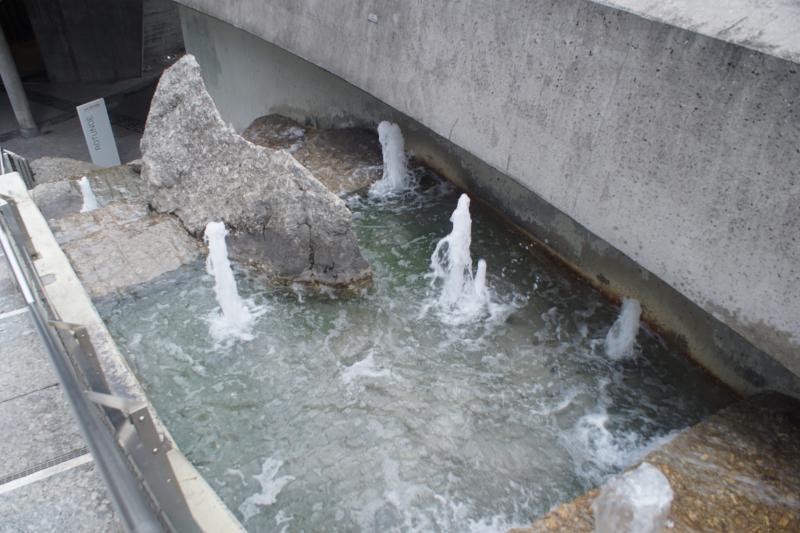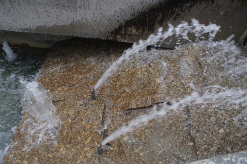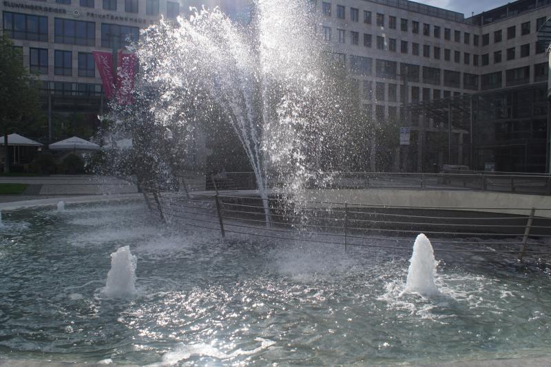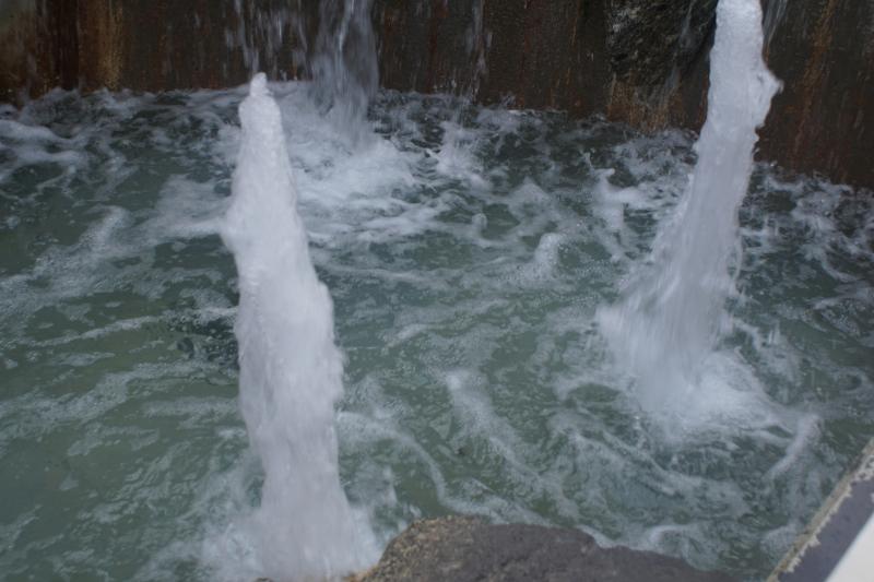 Mehrere Sprudler und Fontänen sind im Brunnen verbaut, der sowohl