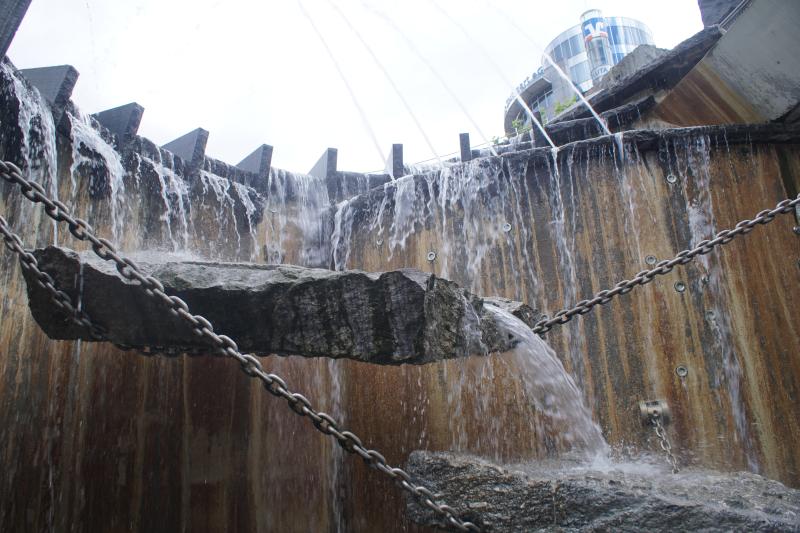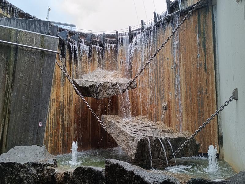 Auf Straßenebene ist ein großes Becken zu finden, in dem sich