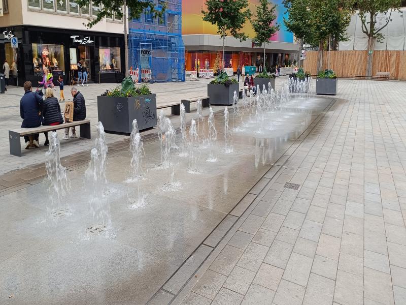 Fontänenfeld befindet sich auf dem Marktplatz in Stuttgart. Es ist