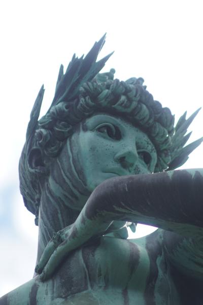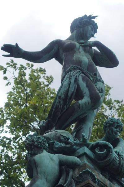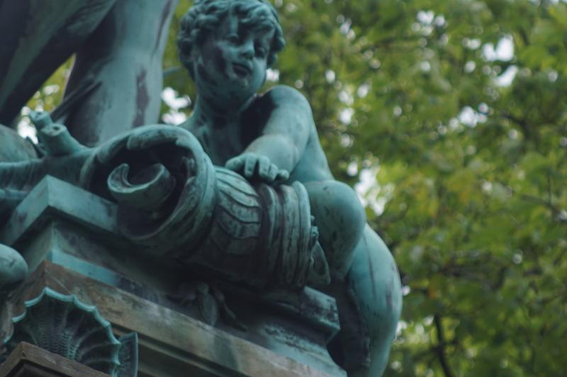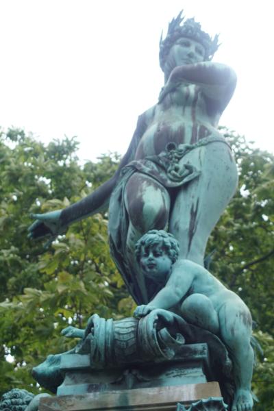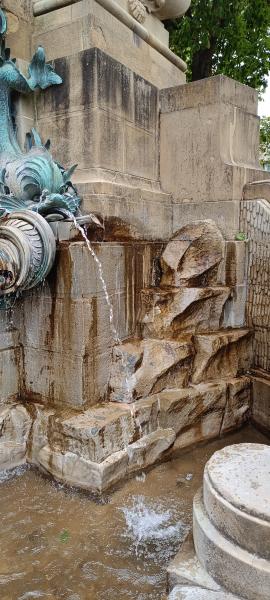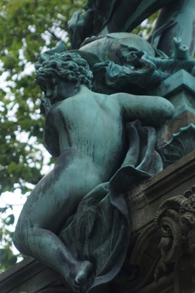 Figuren am oberen Ende der Treppenanlage am Brunnen beschädigt. Die