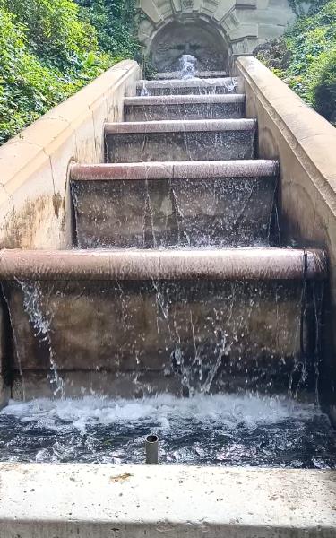 führen. Unterhalb des beschriebenen Galateabrunnens folgen Wasserkaskaden,