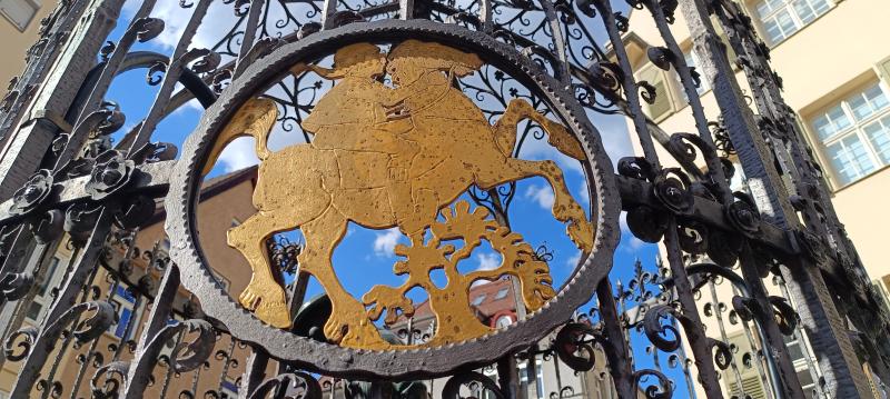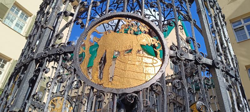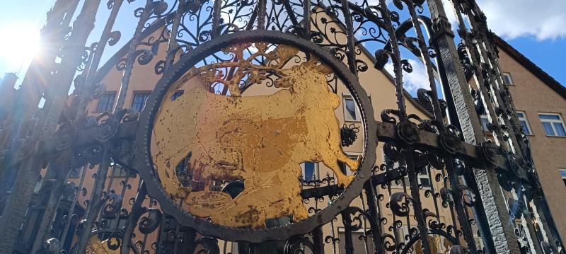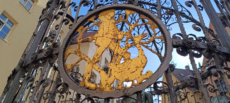 Hans im Glück zeigen. Darüber befindet sich ein schmiedeeiserner