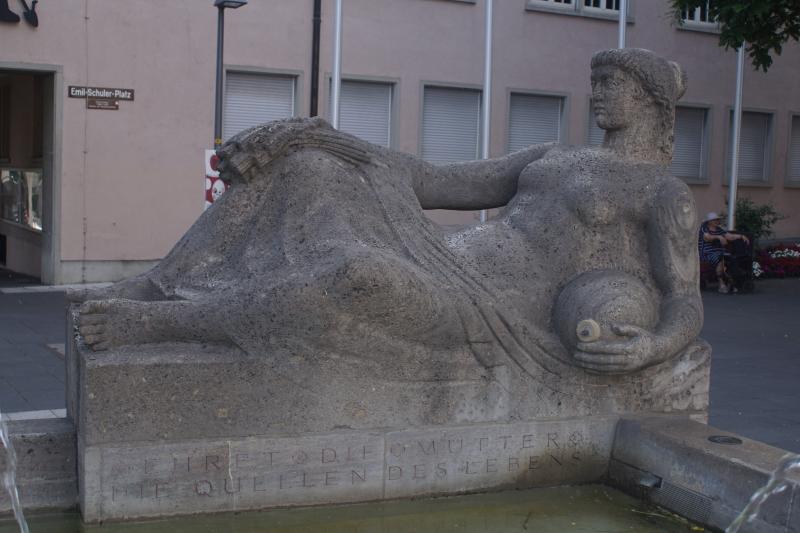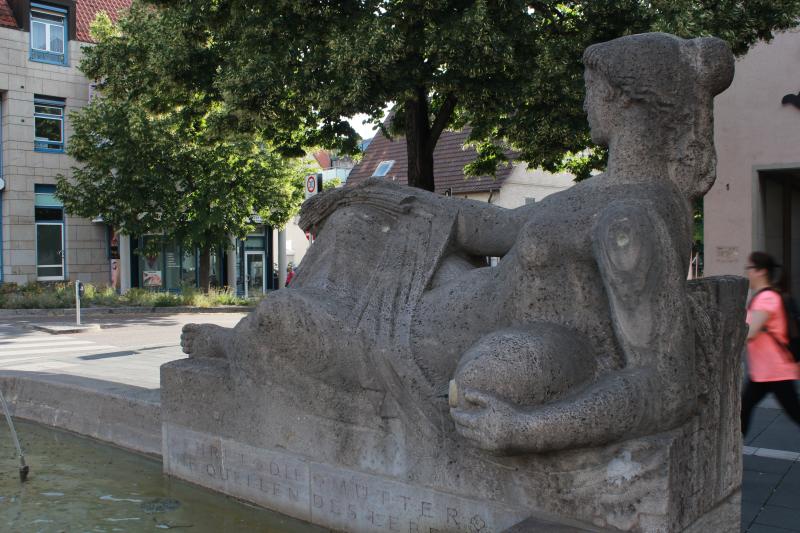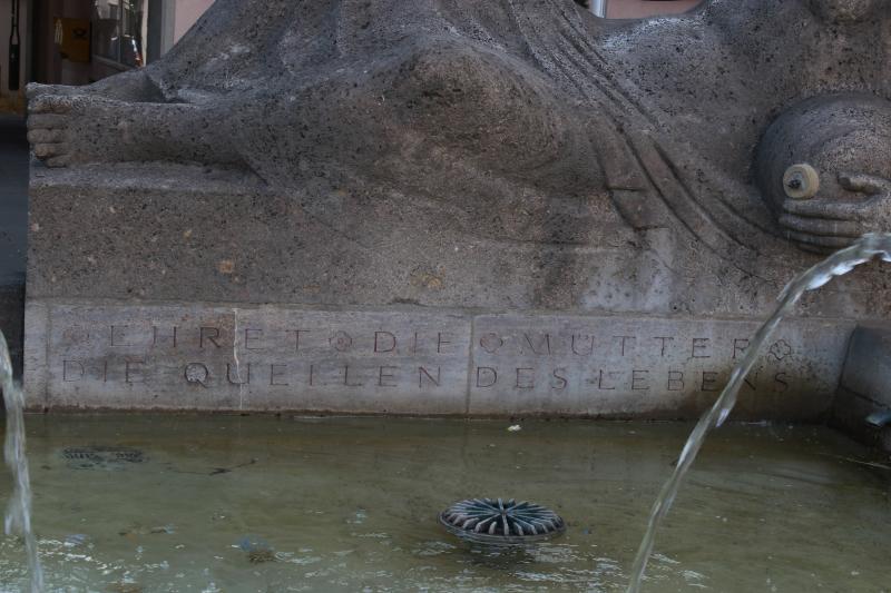 mit einem Quellkrug. Die Inschrift darunter lautet: "Ehret die Mütter