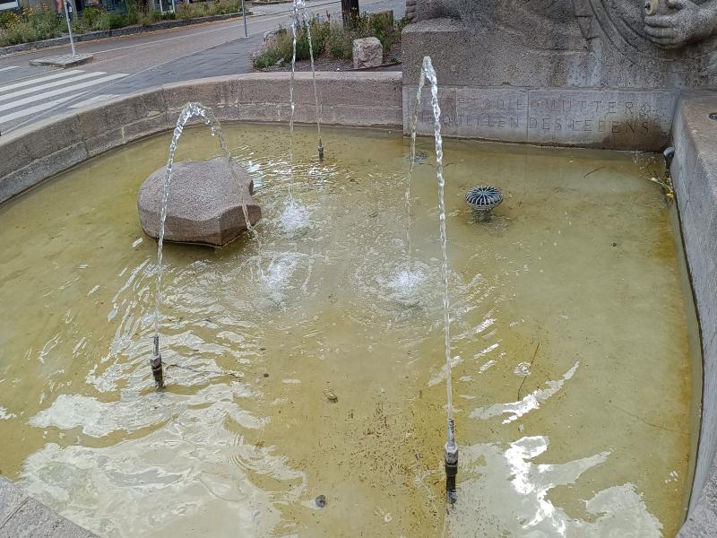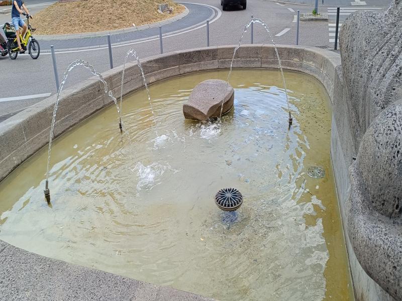 der Brunnenanlage mit drei Fontänen nachgerüstet. |