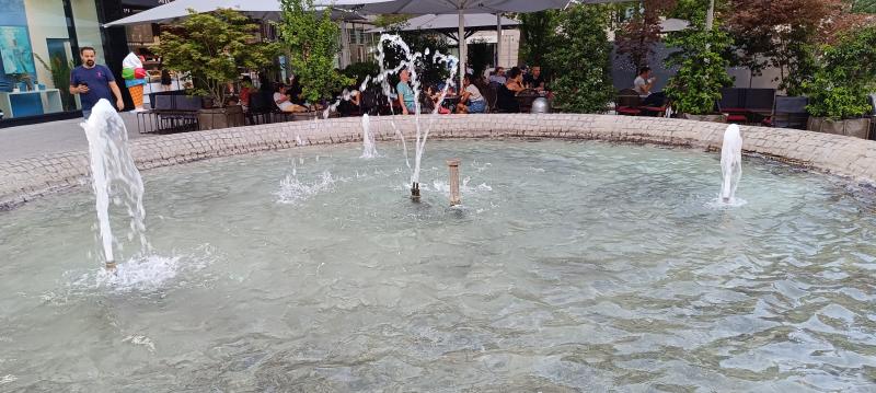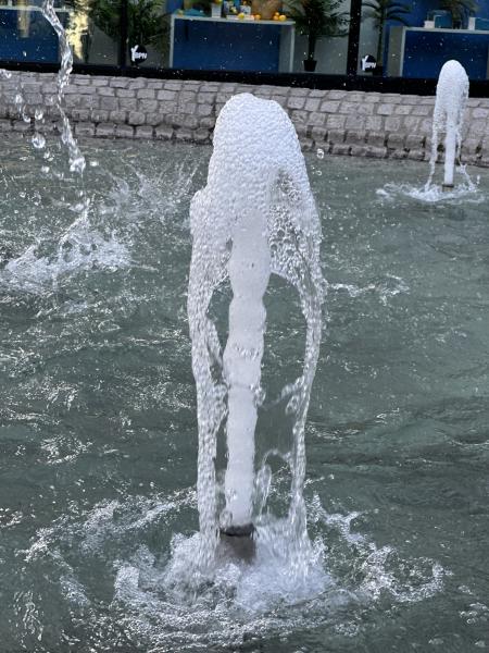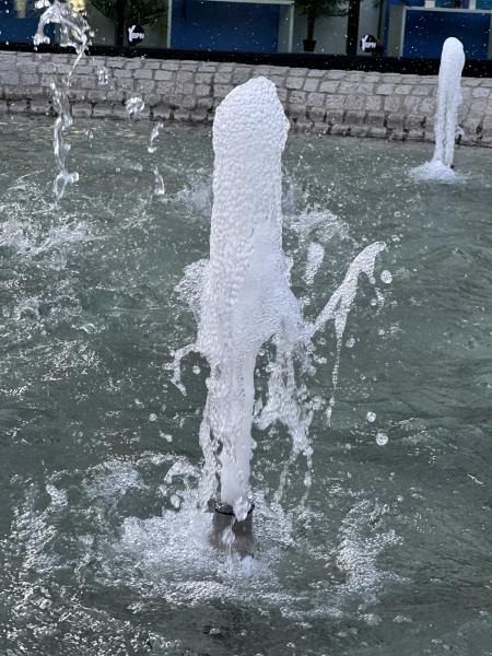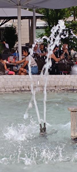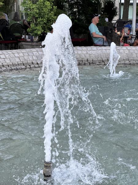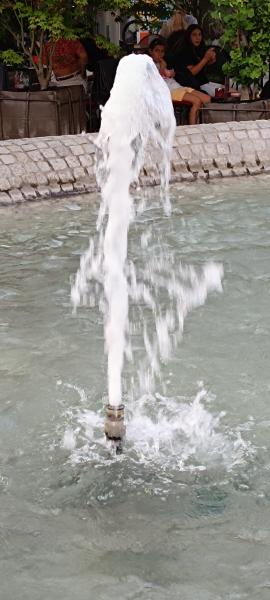 plätschert eine pirouettenförmig aufsteigende Fontäne,