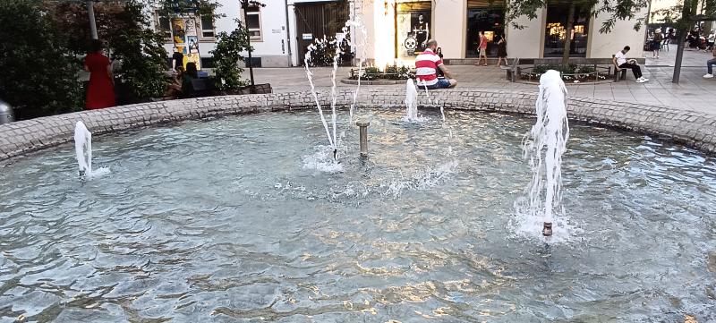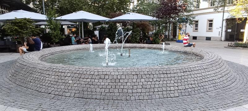 aus dem Pflaster der Fußgängerzone. In der Mitte des Beckens