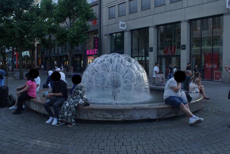 Außerhalb der Betriebszeit des Brunnens dient dieser Ring häufig