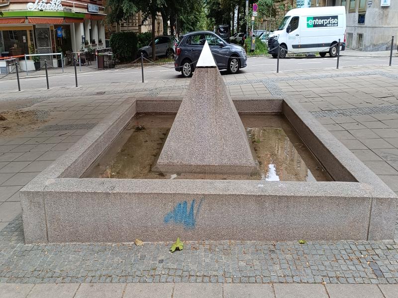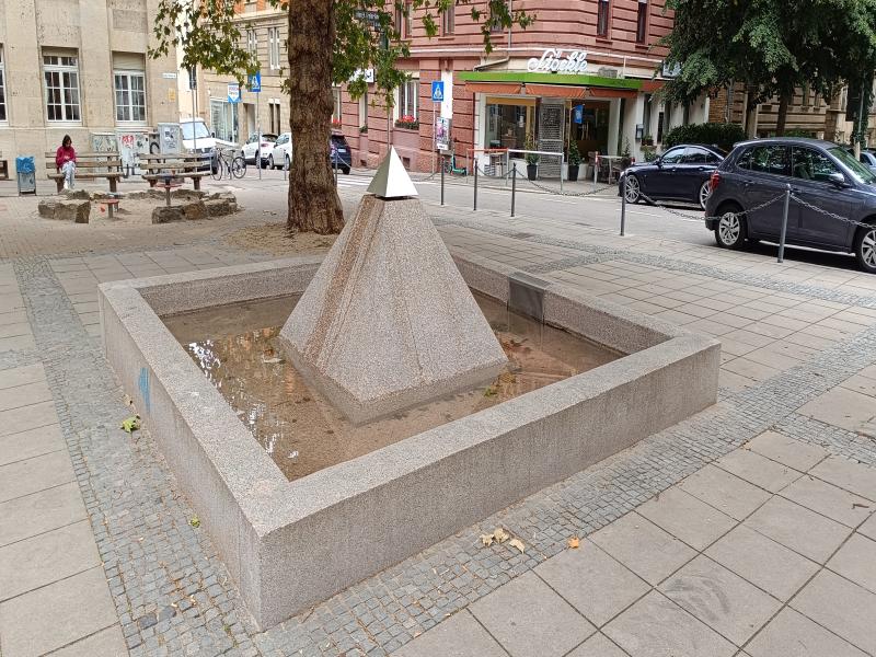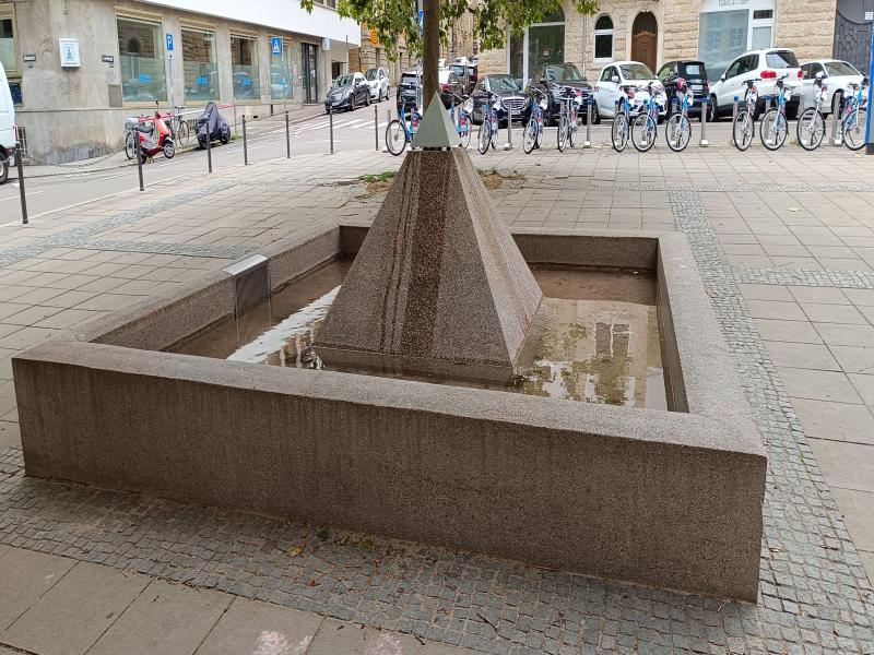 Der Brunnen wurde 1999 von Volkmer entworfen und 2013 durch die Stadt