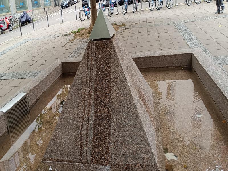 die zum Sitzen und Verweilen einlädt. In der Mitte ragt eine Pyramide