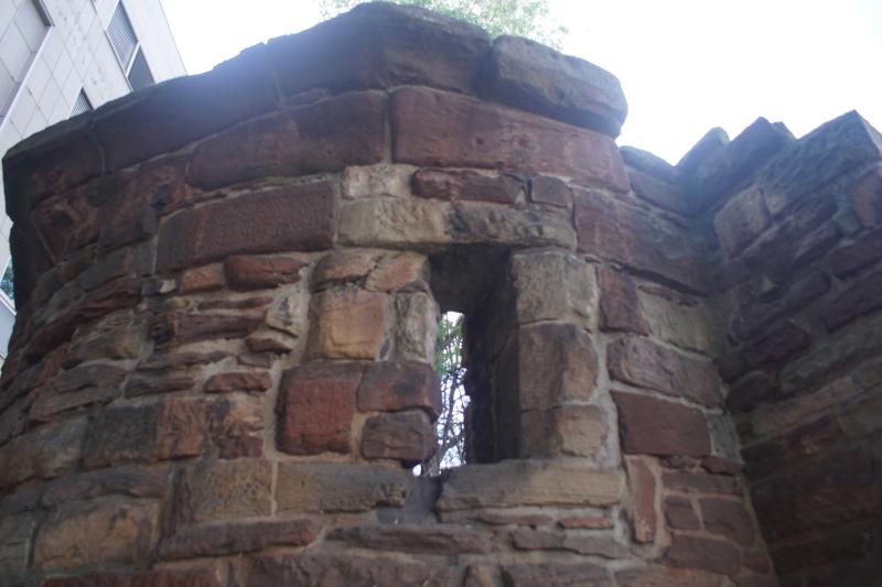 ehemalige Turm aus rotem Sandstein gehörte einst zur Stadtmauer.