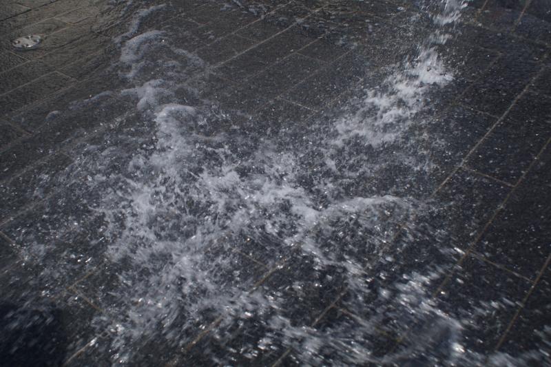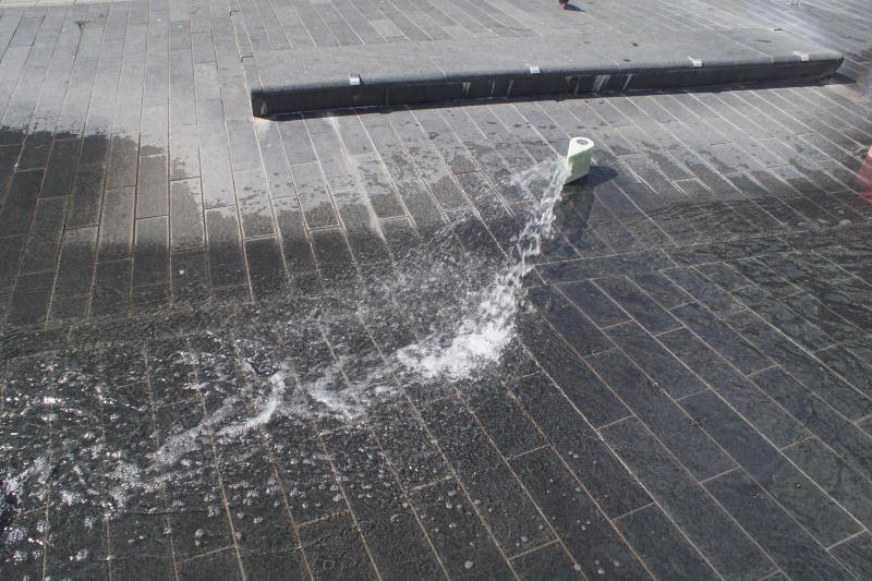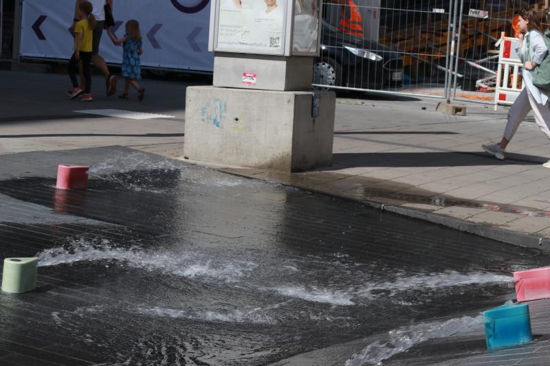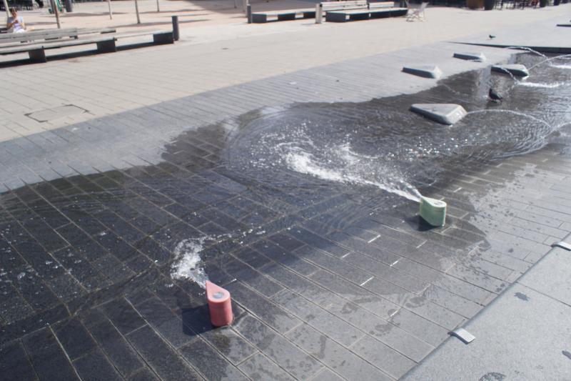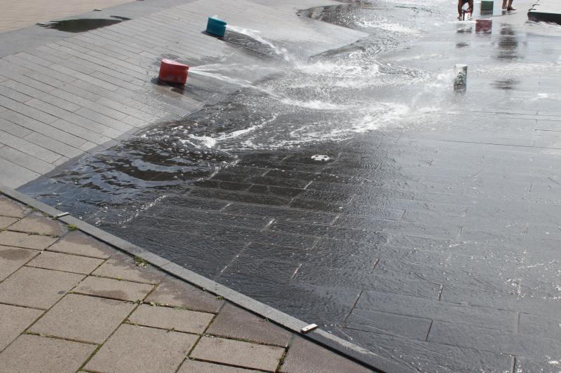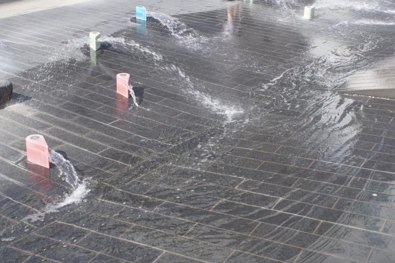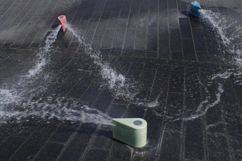 Wasserdüsen am Boden sind teilweise beweglich und das Wasser kann