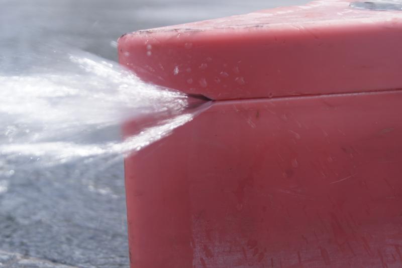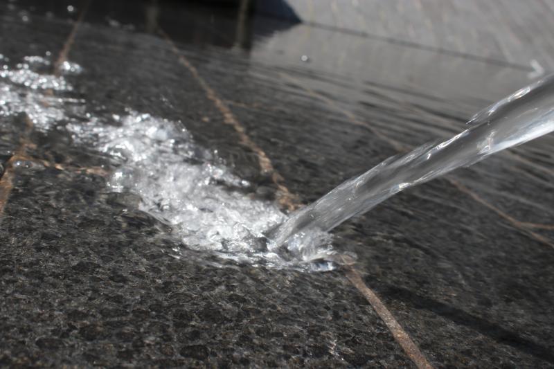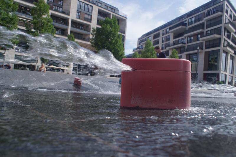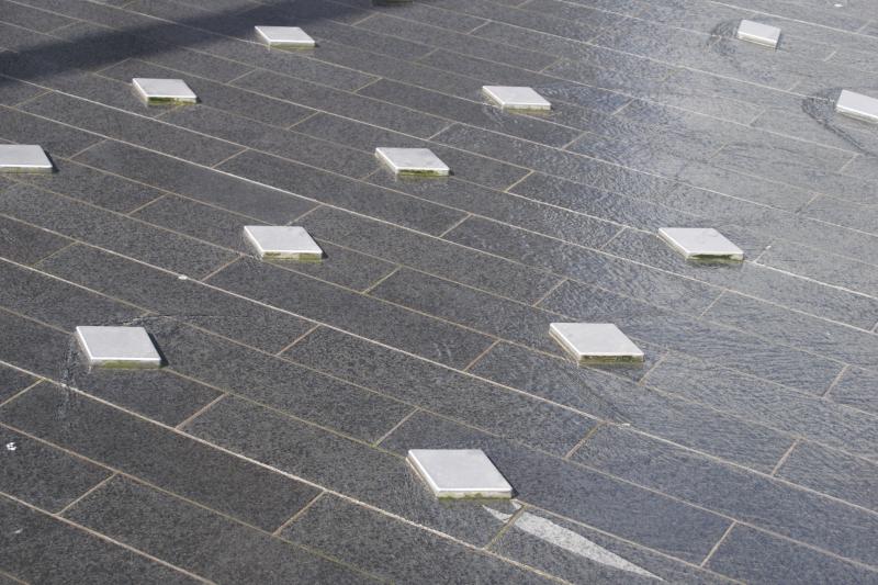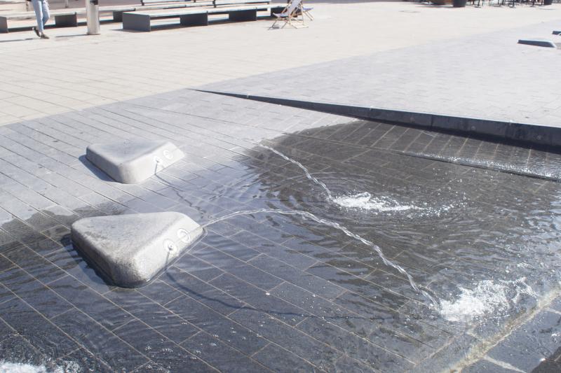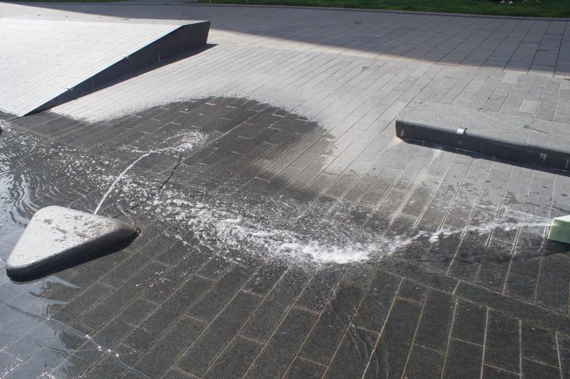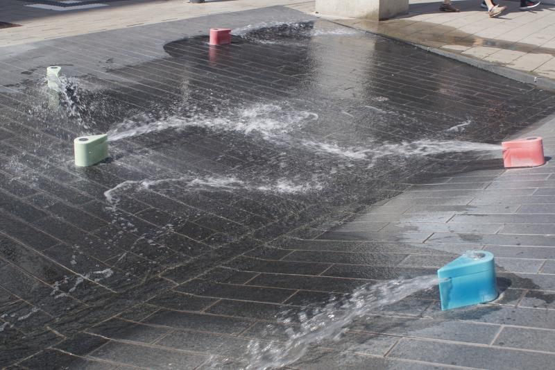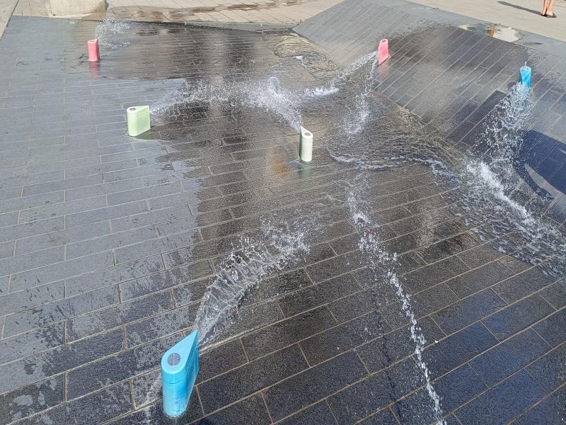 Wasserdüsen am Boden sind teilweise beweglich und das Wasser kann
