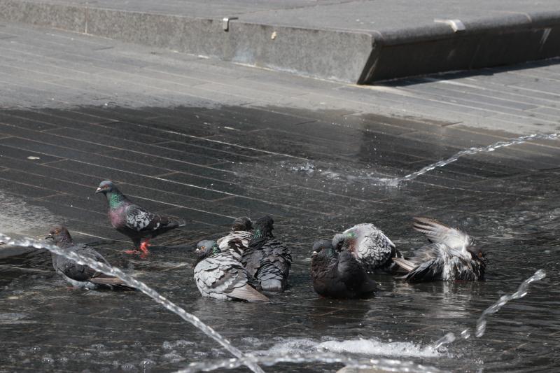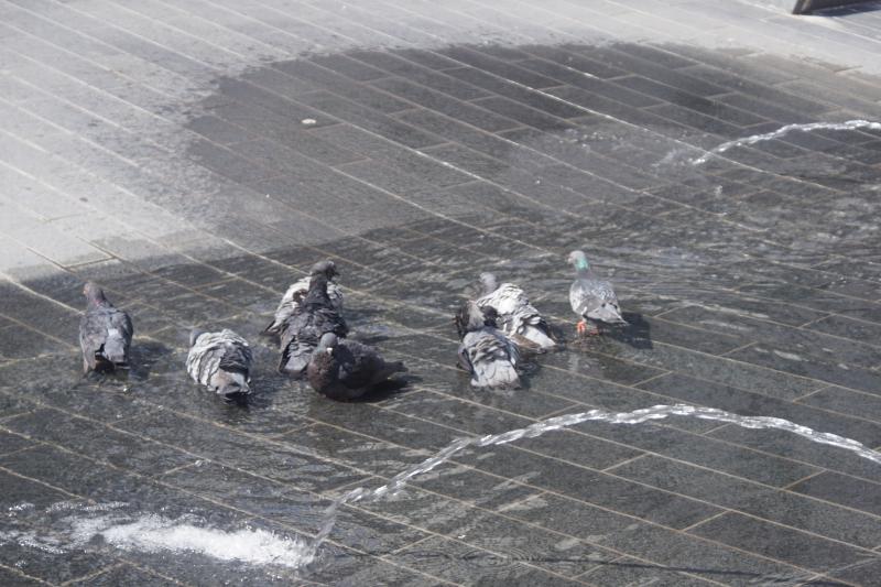 des Mailänder Platzes mit einem Wasserspiel und einem Baumhain aufgewertet.