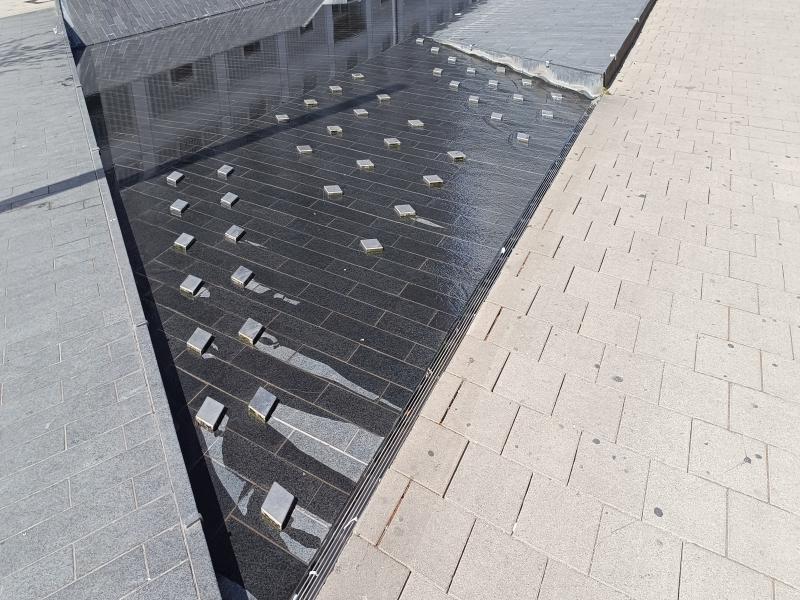 lange und 13 Meter breite Wasserspiel symbolisiert einen "gefalteten