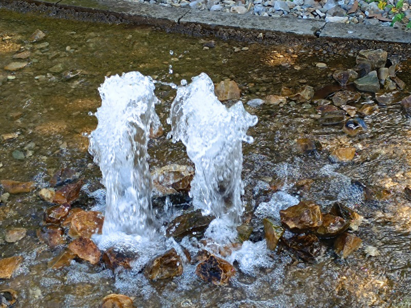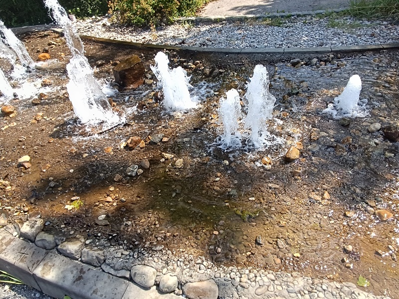 der Zufahrt zum Parkplatz der Therme Erding befindet sich dieses Fontänenfeld. |