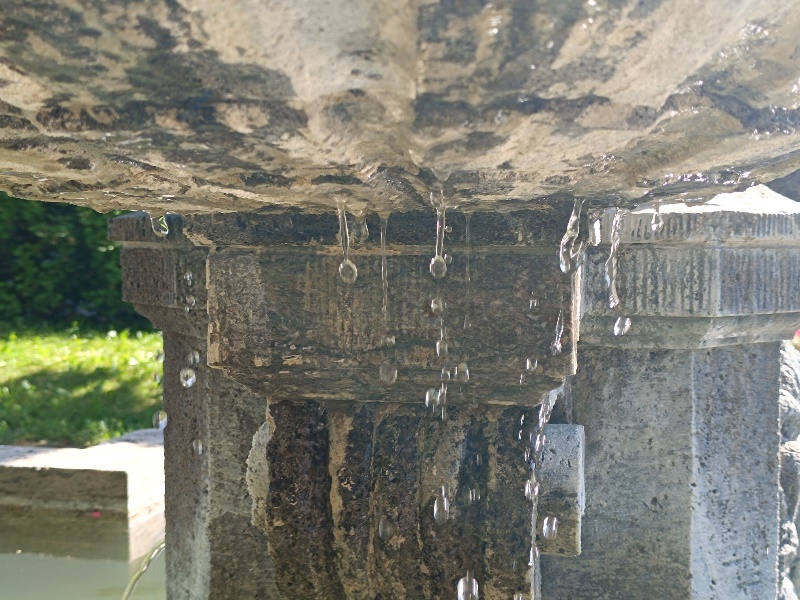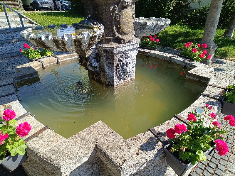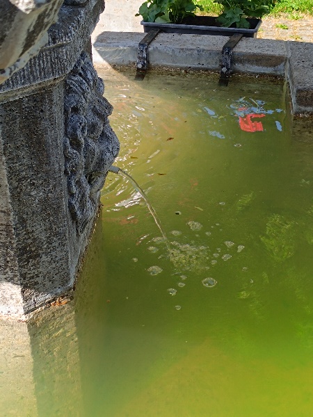 lief bei meinem Besuch nur ein seitlicher Wasserauslass in die Brunnenschale.