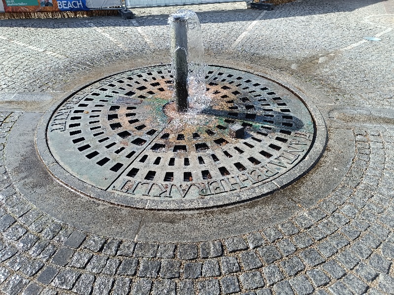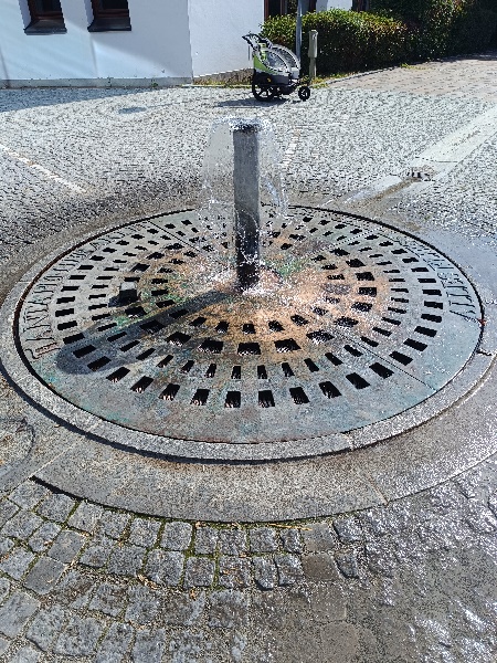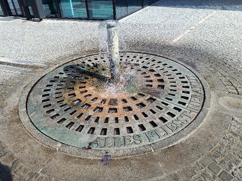 Stadthalle. „Alles fließt“ ist das Motto dieses Brunnens,