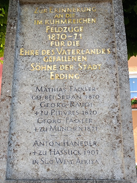 das Denkmal und der Brunnen durch den Erdinger Steinmetz Meyer. Das