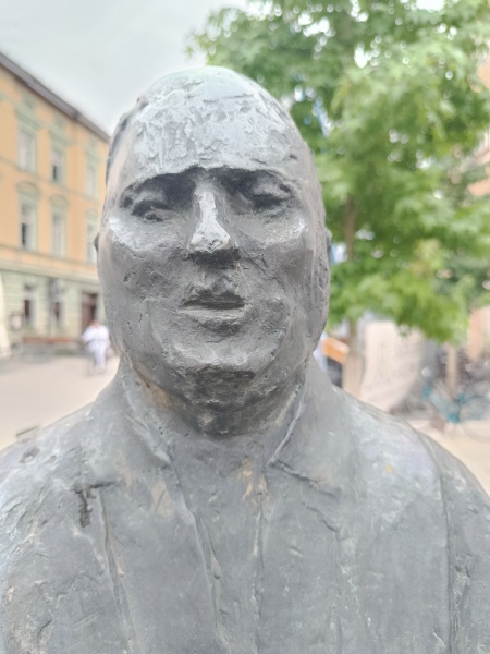 Brunnen auf dem Münchner Viktualienmarkt - dem Volkssänger Roider