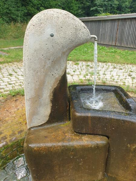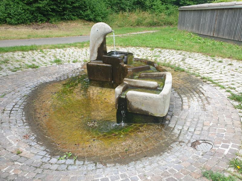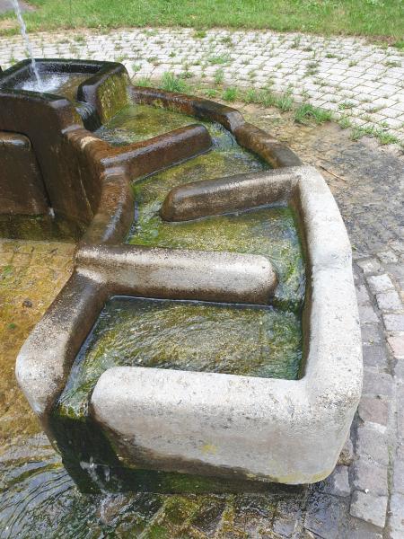 mehrere Stufen in das Bodenbecken. Der Brunnen führt kein Trinkwasser.