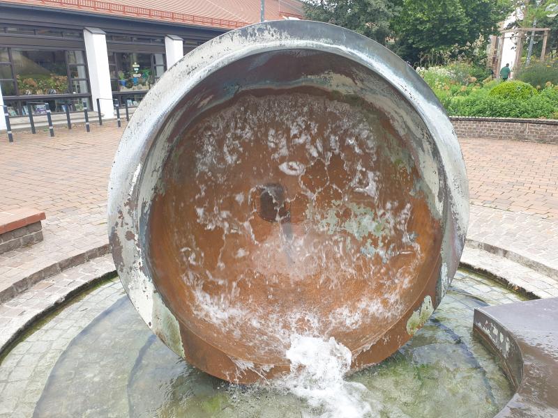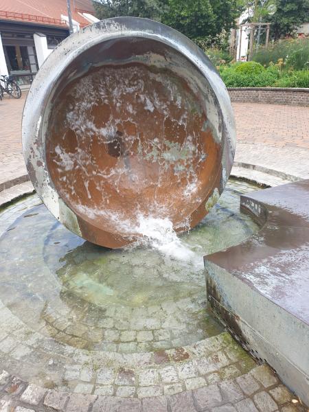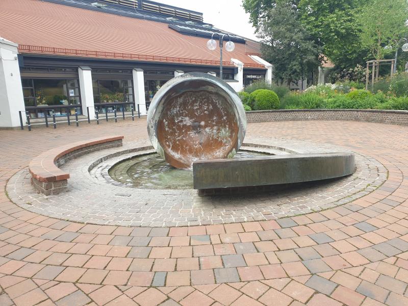 "Kugelbrunnen" befindet sich auf dem Bürgerplatz in Garching