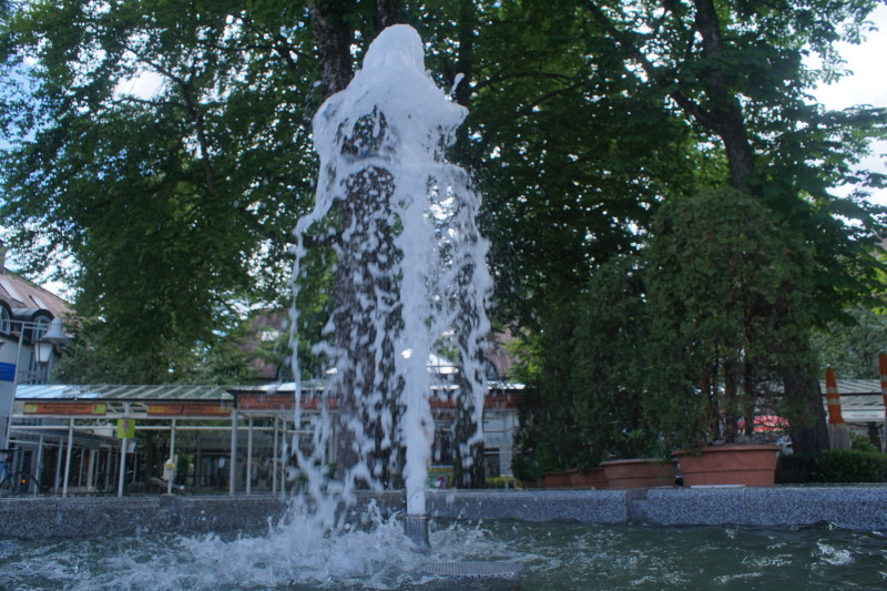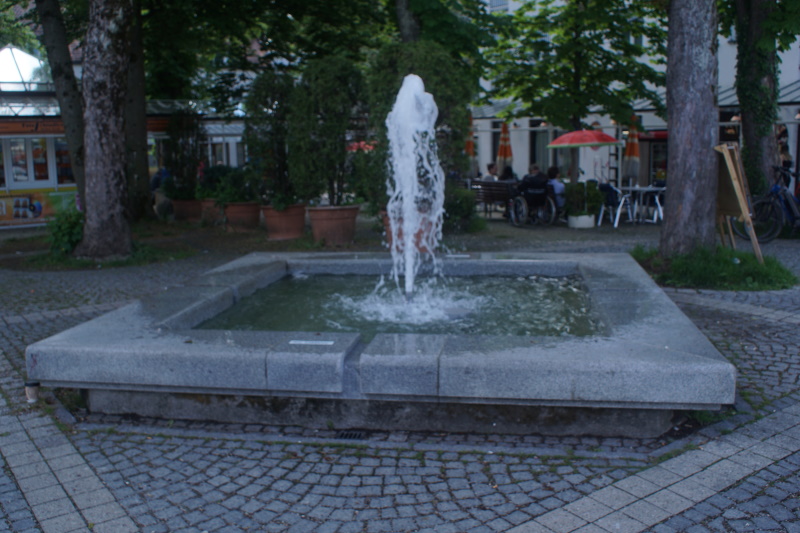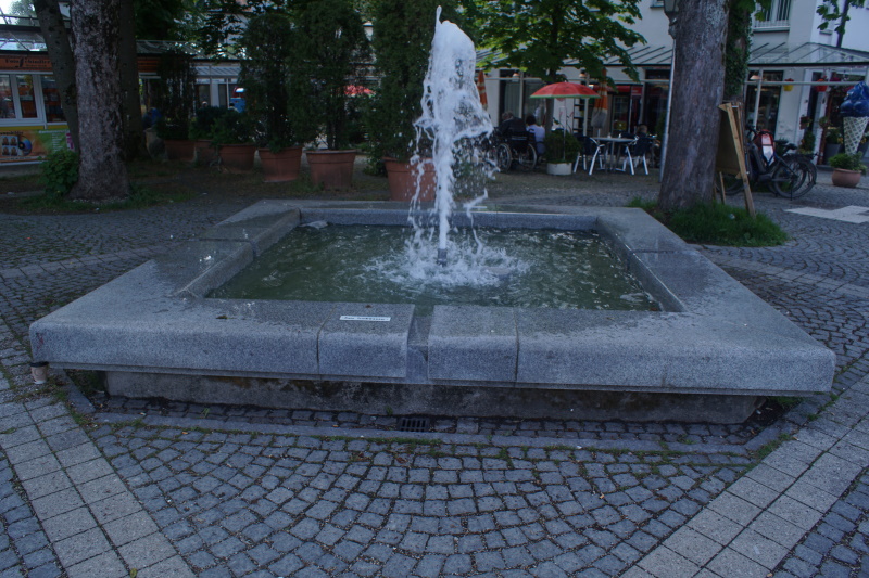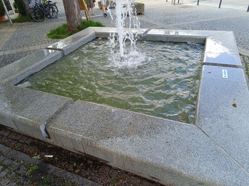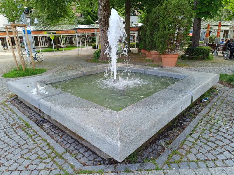Brunnen aus Marmor mit einer Fontäne in der Mitte befindet sich auf