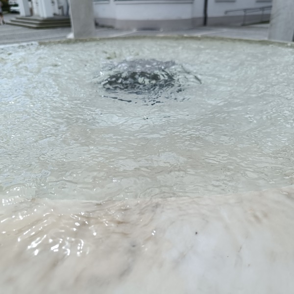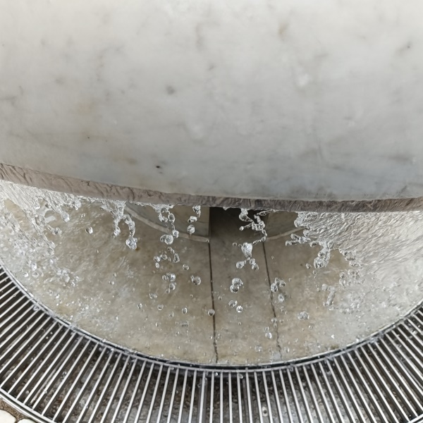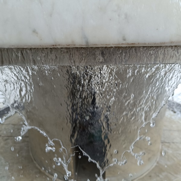 das Wasser über die Rundung ins Becken. |