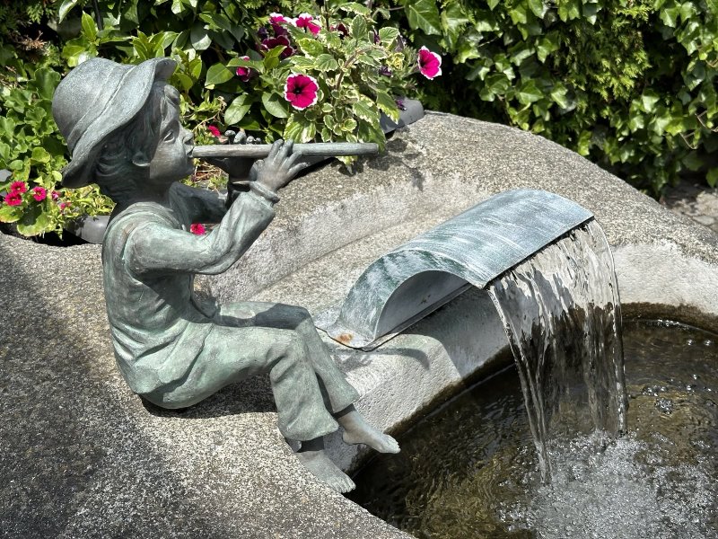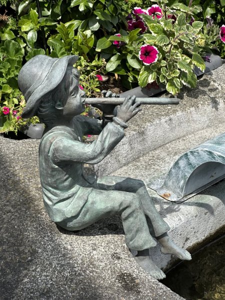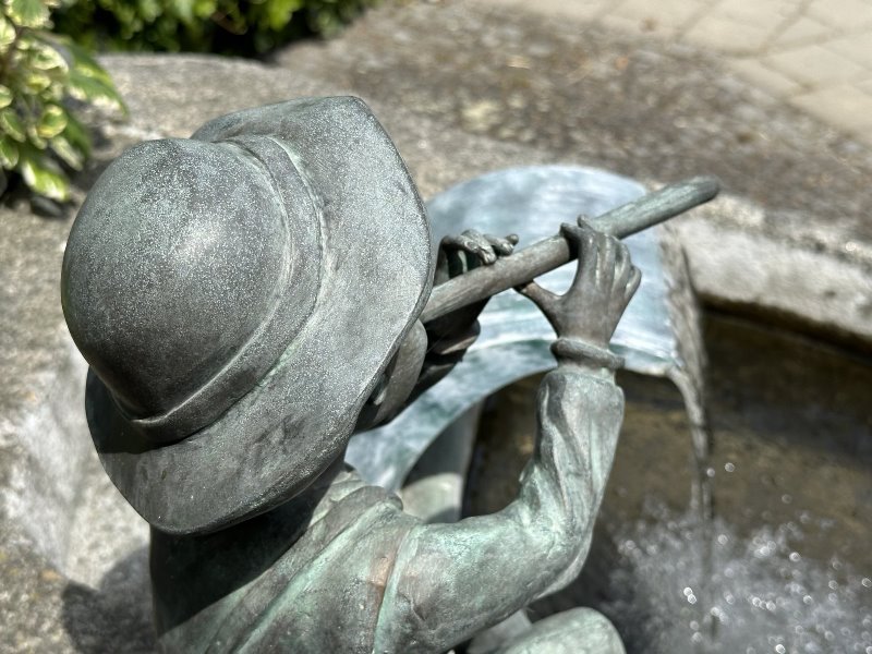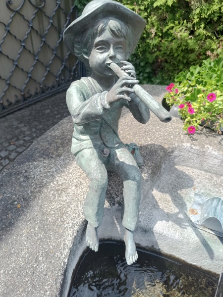 dem Weg nach Markt Indersdorf. Ein kleiner, Flöte spielender Junge