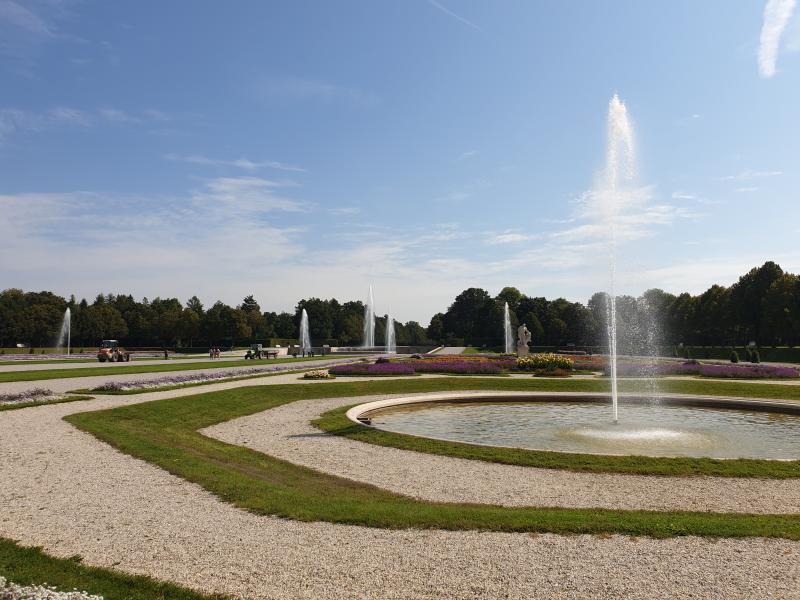 einige Bilder, auf denen mehrere der Fontänen im Schlosspark zu sehen